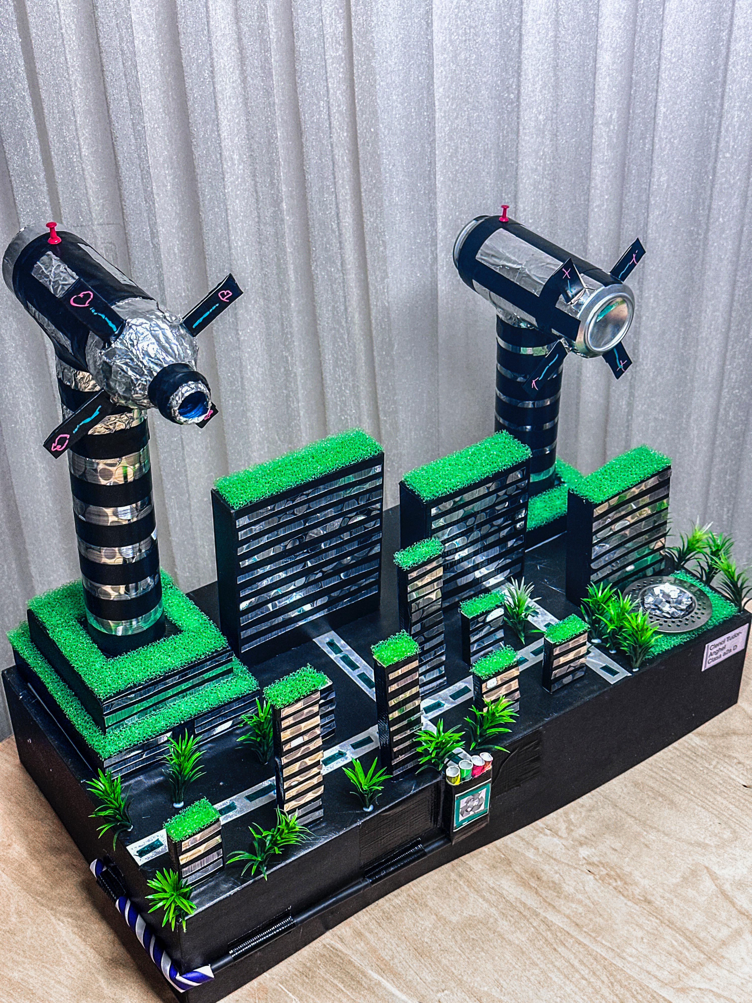 Captând vântul si razele solare, orasul devine un ,,Oraș al morilor de vânt si al oglinzilor,'' în care viitorul copiilor strălucește.