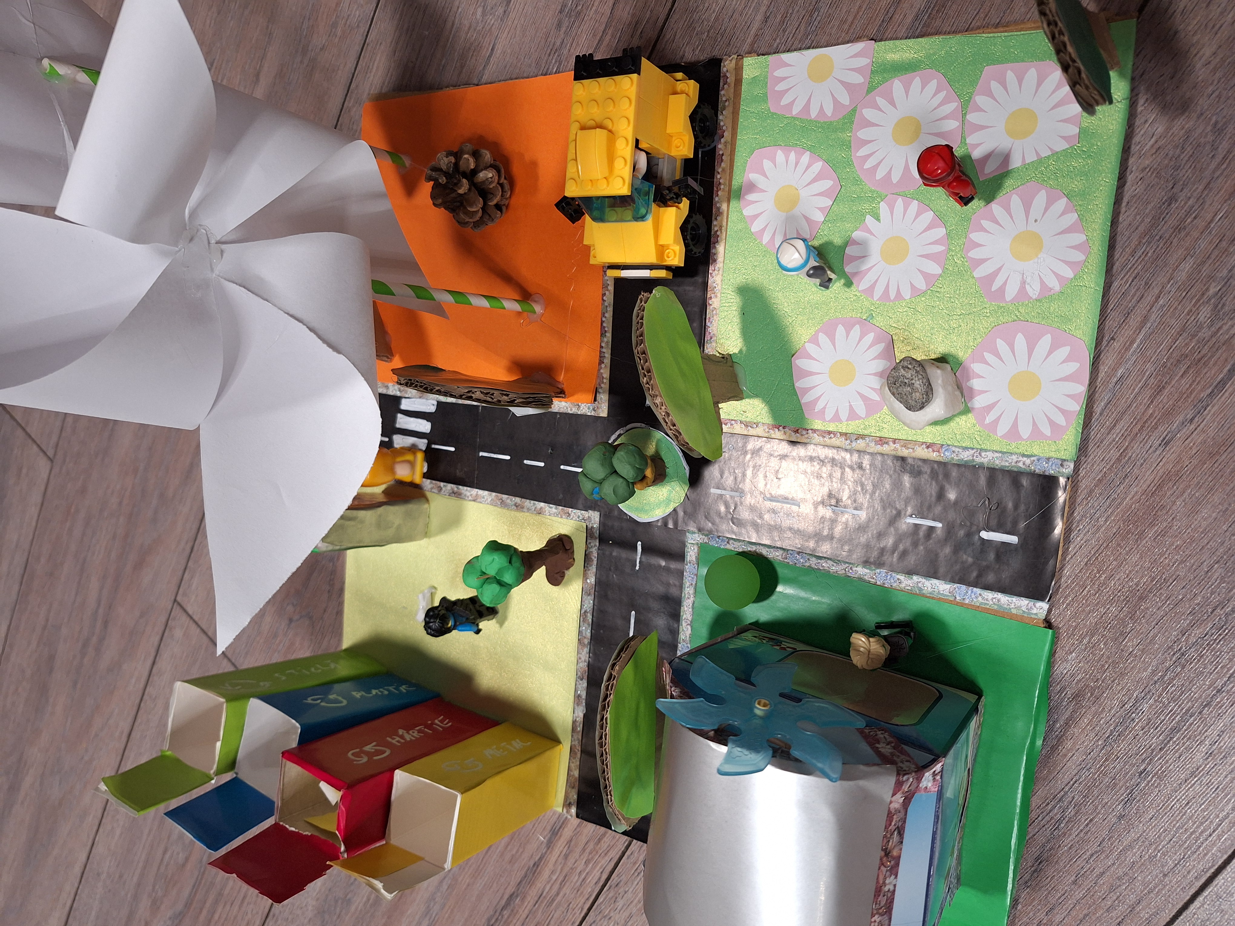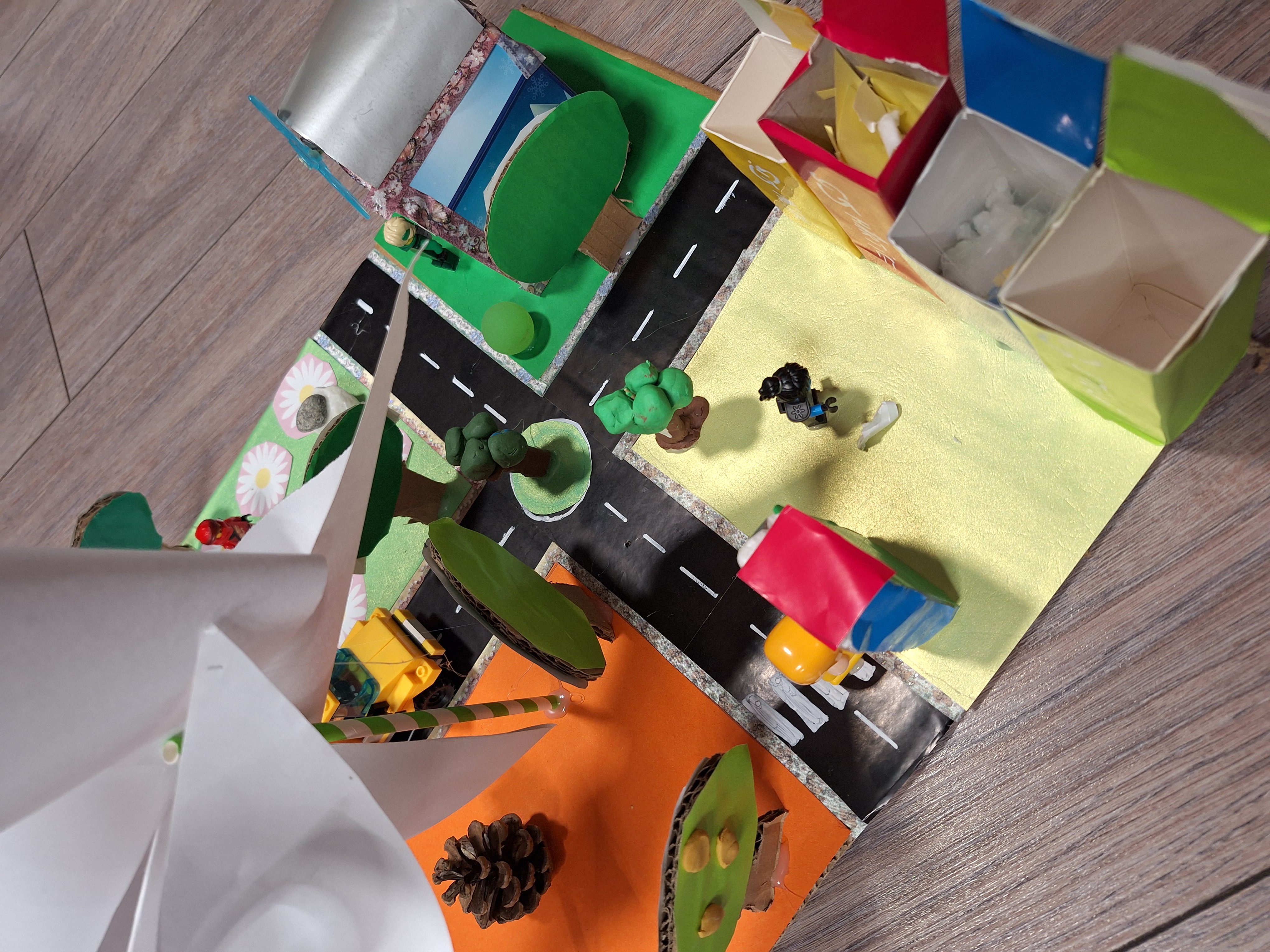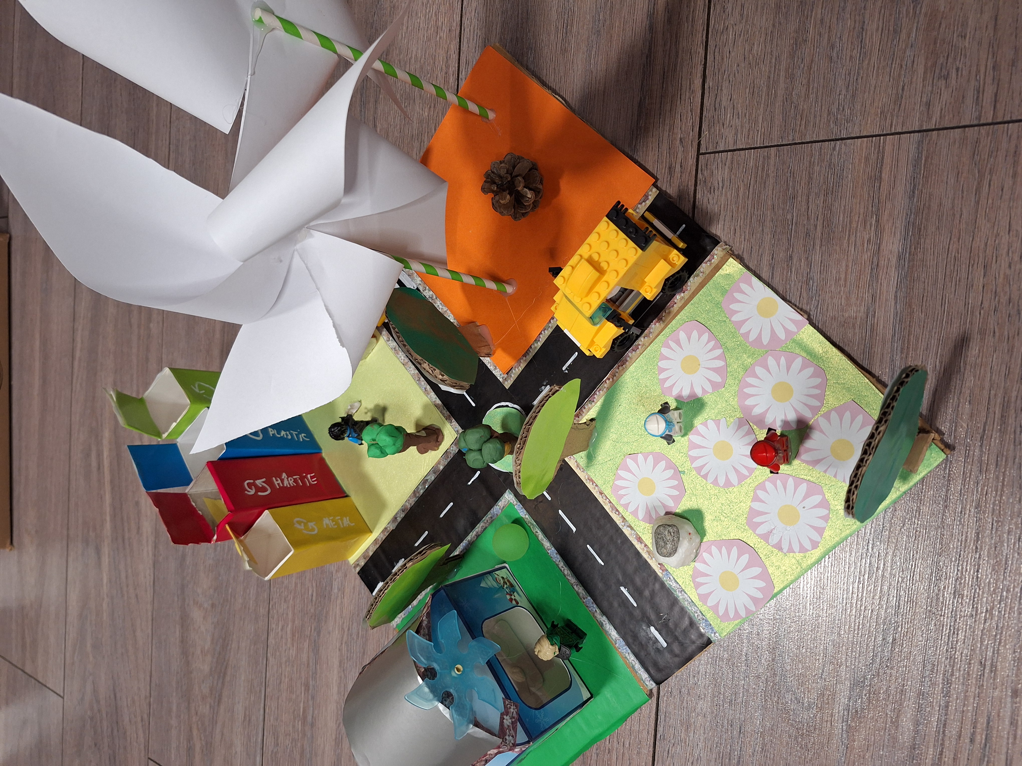 Proiectul meu este realizat din materiale refolosite, si cuprinde elemente de energie alternativa, zona de reciclare, piste de biciclete si casa verde.