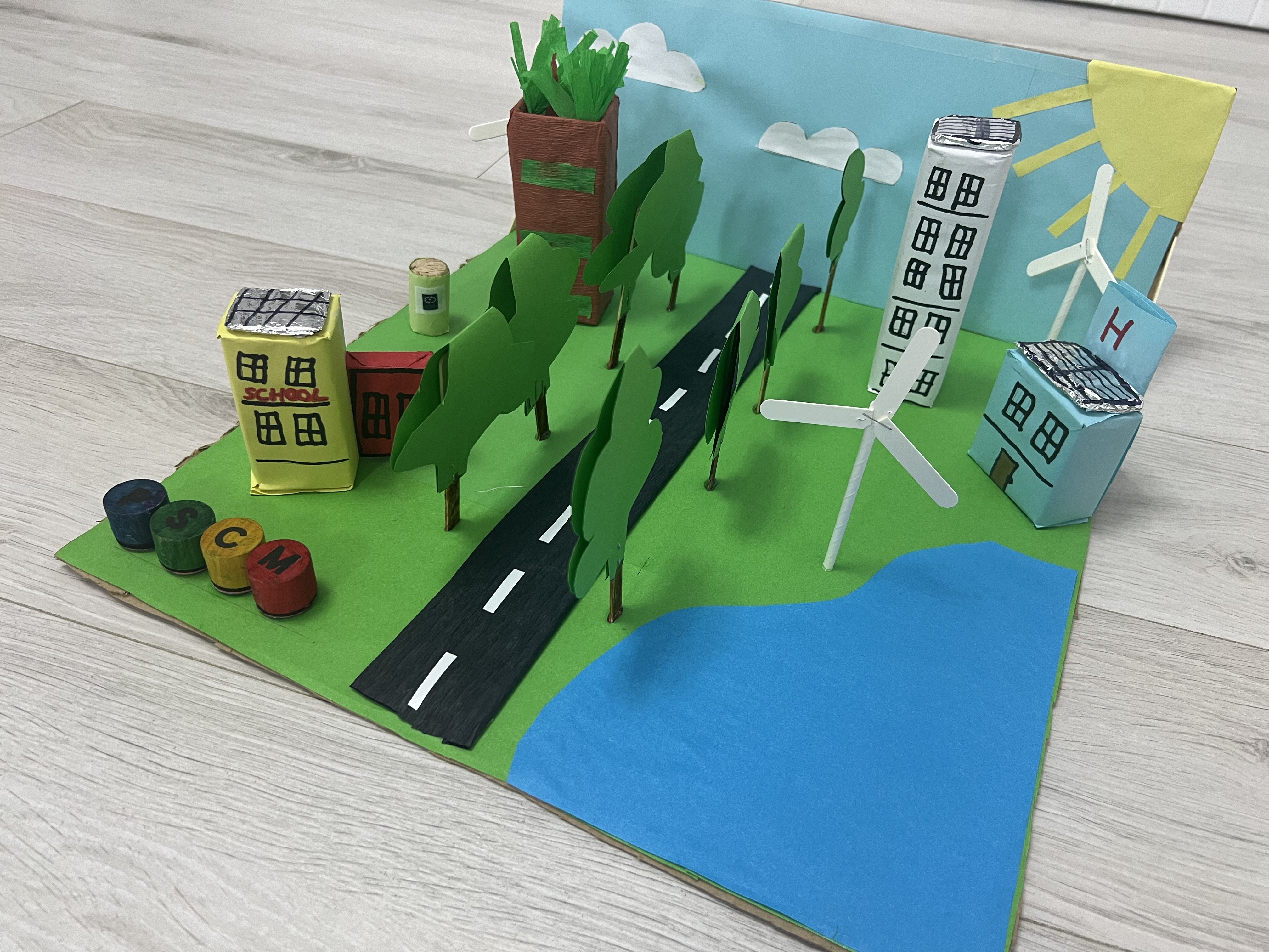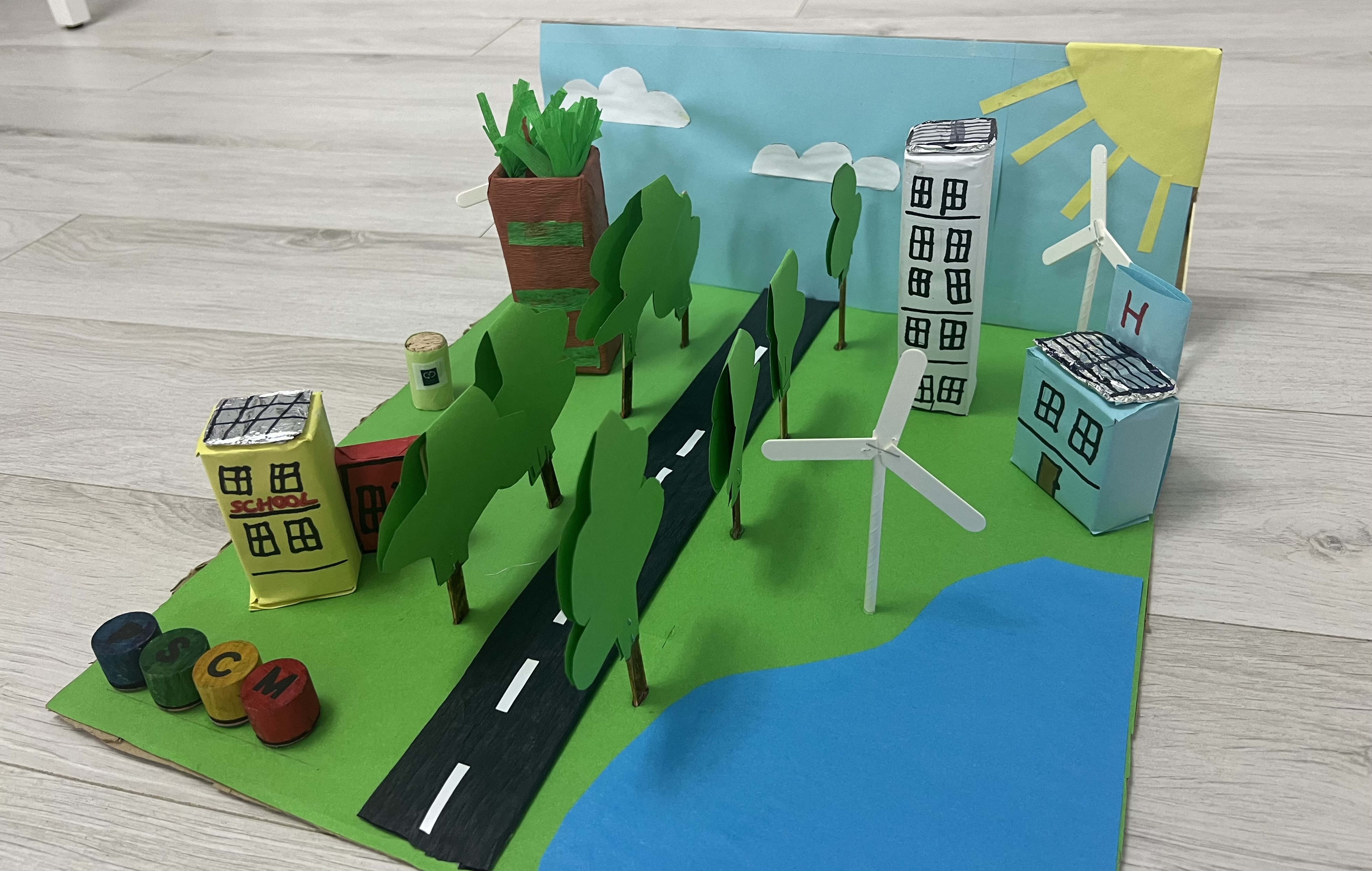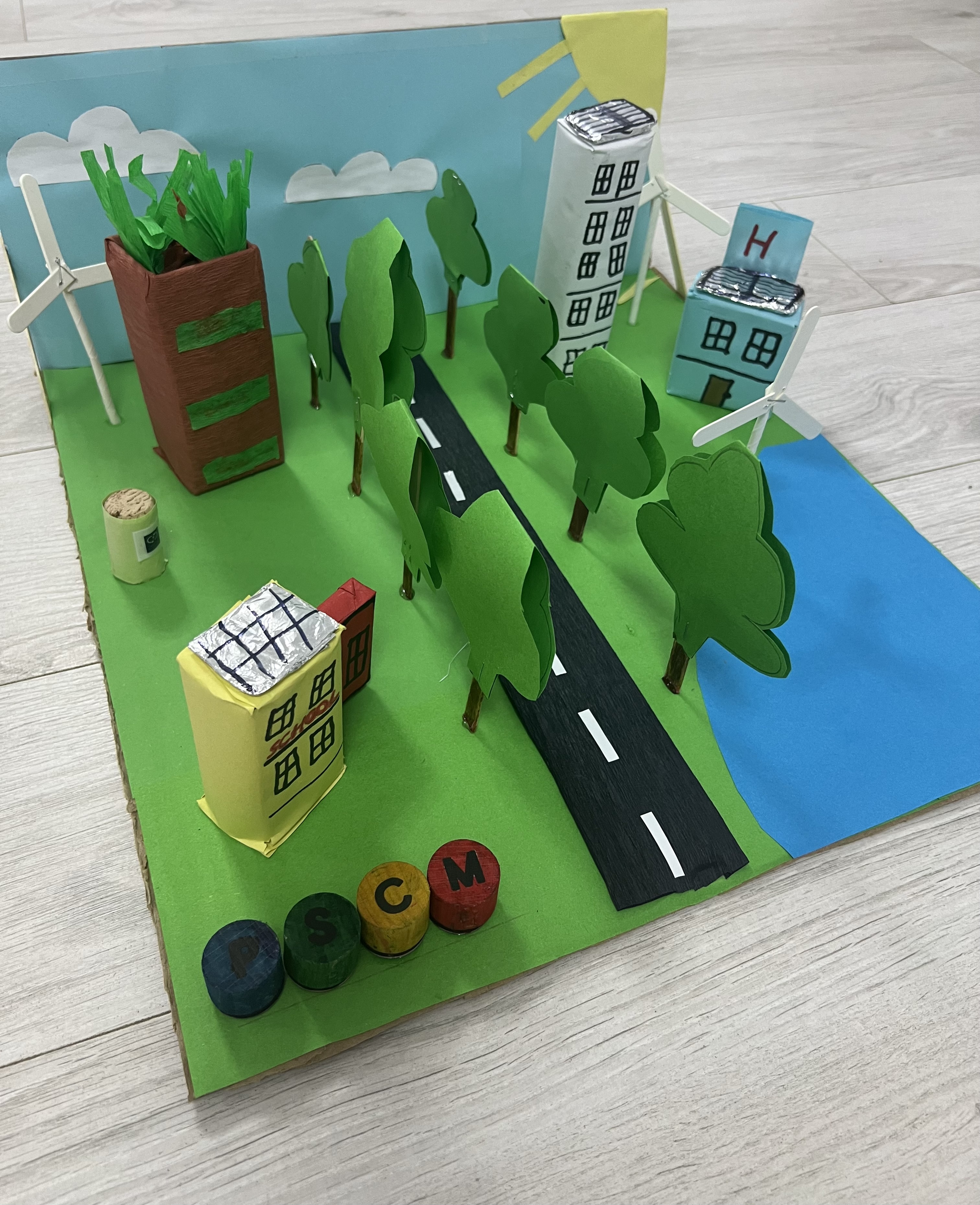 Materiale utilizate: hârtie, plastic, dop pluta, paletine lemn.